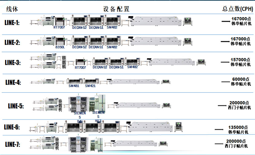 SMT線(xiàn)體配置及生產(chǎn)能力